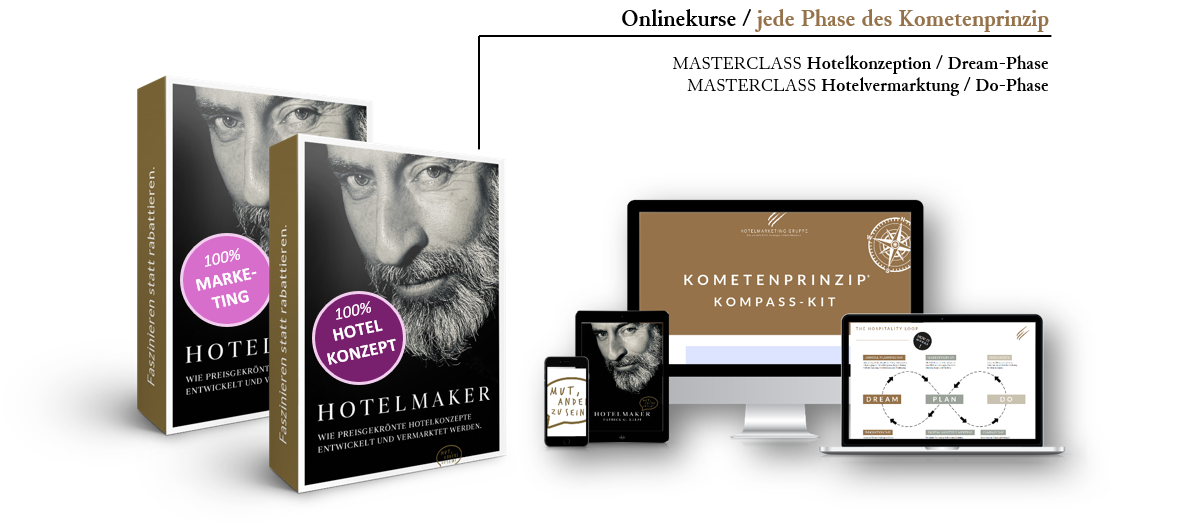 Onlinekurse für Hotelmarketing / Hotel Marketing Agentur / Hotelmaker Patrick G. Rueff / Hotelmarketing Kometenprinzip / Webinar für Marketing für Hotels / Hotelmarketing Buch / Aktuelles Hotelmarketing-Wissen